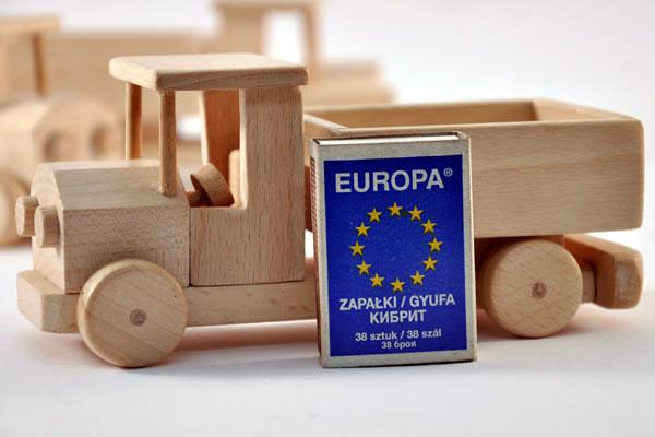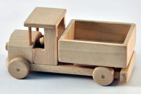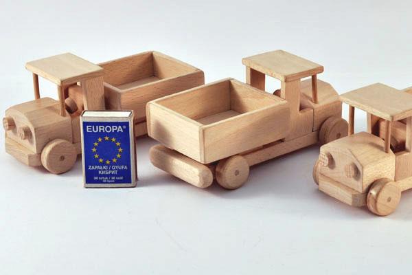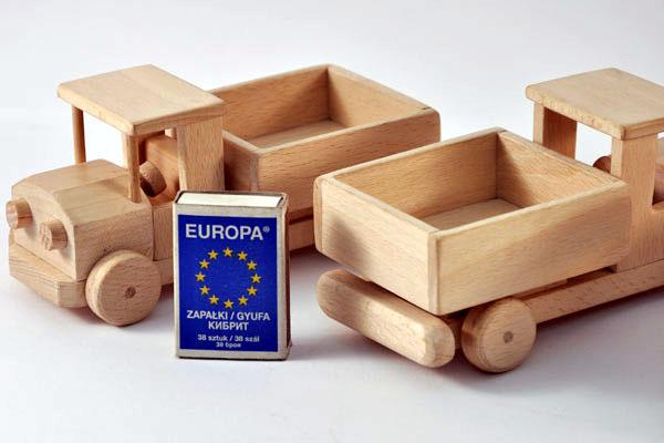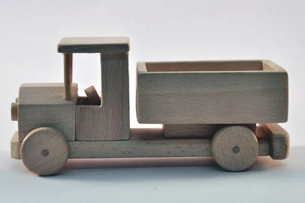 Pojazd wykonany całkowicie z litego drewna (bukowego, dębowego, brzozowego), impregnowanego woskiem. Wykonany bardzo solidnie, starannie dopracowany, ręcznie wykańczany, klejony. Miły w dotyku, z dobrze widoczną strukturą drewna. Wspaniale rozwijający wyobraźnię (nie tylko młodych) użytkowników.