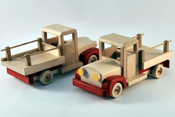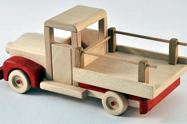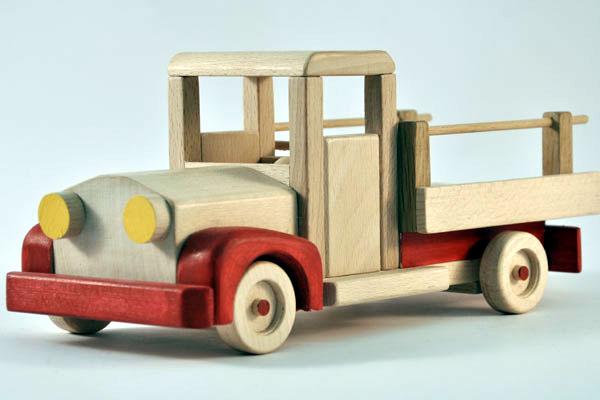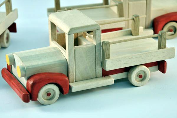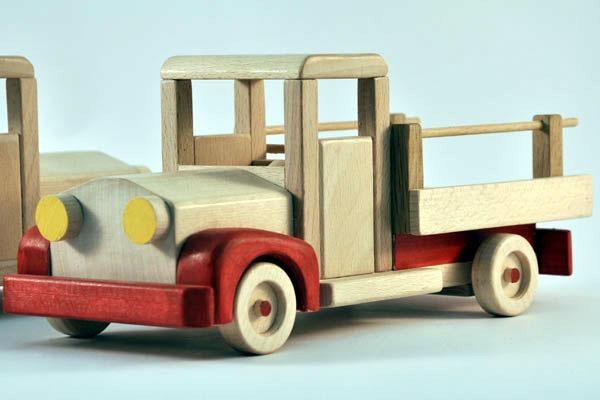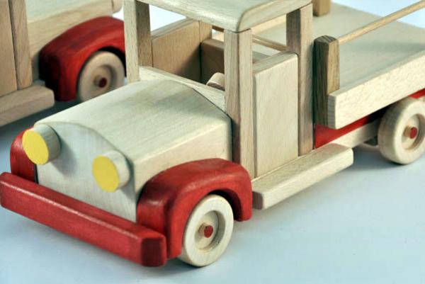 Pojazd wykonany całkowicie z litego drewna (bukowego, jesionowego, dębowego), impregnowanego woskiem, z elementami malowanymi bezpiecznymi farbami akrylowymi. Wykonany bardzo solidnie, ze starannie dopracowanymi szczegółami, ręcznie wykańczany, klejony. Miły w dotyku, z dobrze widoczną strukturą drewna. Wspaniale rozwijający wyobraźnię użytkowników.
