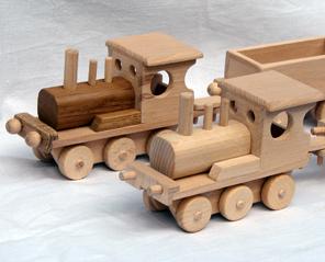 Miniatura pociągu wykonana całkowicie z litego drewna