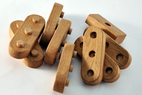 Drewniane klocki o fantastycznych mozliwościach tworzenia konstrukcji dzięki wbudowanym w nie mocującym kołeczkom. Posiadają prosty sposób łączenia. Klocki zupelnie inne od tradycyjnych.