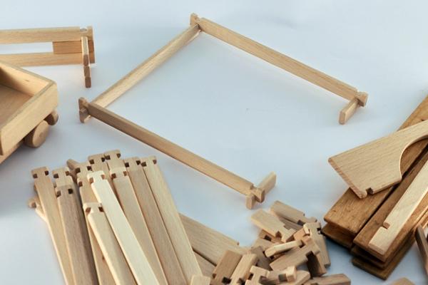 Drewniane klocki konstrukcyjne TimberFan do samodzielnego montażu posiadają oryginalny system łączenia.